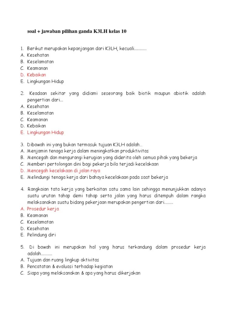 Soal Dan Jawaban K3Lh Kelas 10 - Contoh Soal Pilihan Ganda Dan Essay Lengkap K3lh Keselamatan Kesehatan Kerja Dan Lingkungan Hidup Griyachumaidi Com : Kumpulan soal beserta kunci jawaban sekolah terbaru menu.